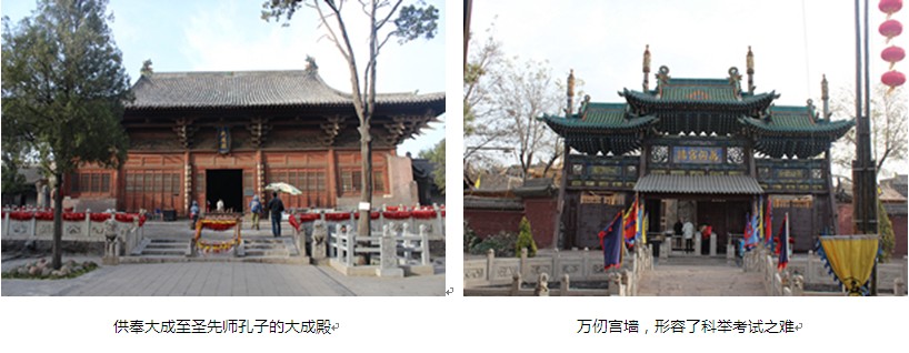 平遙文廟始建于唐貞觀初年,大成殿為金代重建,至今保持原貌,是我國(guó)現(xiàn)存各級(jí)文廟中歷史較久的殿宇,是全國(guó)文廟中不多的金代建筑。大成殿是文廟的心臟部位,供奉著大成至圣先師孔子的塑像。明倫堂,在大成殿后,是強(qiáng)化孔子儒教中的君臣、父子、尊卑等人倫關(guān)系的殿堂。據(jù)說(shuō),當(dāng)年凡中狀元者要從東門城樓登上云路,然后再登魁星樓、文昌閣,經(jīng)過(guò)云路坊(凌空而架,像云中虹橋),再跨進(jìn)欞星門,經(jīng)過(guò)狀元橋,再到大成殿祭拜孔子。