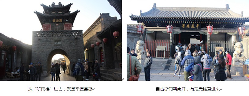 經(jīng)過(guò)六個(gè)多小時(shí)的車程,我們抵達(dá)了中國(guó)四大古城之一的平遙古城。平遙古城位于山西中部,是一座具有2700多年歷史的文化名城,與同為第二批國(guó)家歷史文化名城的四川閬中、云南麗江、安徽歙縣并稱為“保存完好的四大古城”,也是目前我國(guó)以整座古城申報(bào)世界文化遺產(chǎn)獲得成功的古縣城。鳥瞰平遙古城,形同一只欲行未動(dòng)的烏龜,“龜”頭南尾北,東西四門比擬為龜之四足,民間故有“龜城”之說(shuō)。南門之外,古有中都河水蜿蜒而過(guò),從而引發(fā)了古代文人“龜前戲水,山水朝陽(yáng),城之攸建,以此為用”的感慨。烏龜是吉祥、長(zhǎng)壽的象征,“龜城”之說(shuō)源于古人對(duì)“四靈”的崇拜,“龜城”寓意固著金湯,長(zhǎng)治久安。走進(jìn)古城,一股厚重的歷史氣息撲面而來(lái)??粗哌_(dá)12米的城墻,看著結(jié)構(gòu)整齊的磚石結(jié)構(gòu),不得不讓人驚嘆古代勞動(dòng)人民的血汗與智慧,在生產(chǎn)工具落后的情況下,建造起如此雄偉的防圍,來(lái)保護(hù)自己的家園。西風(fēng)烈烈中,城墻上的角臺(tái)、城樓在訴說(shuō)著當(dāng)年的廝殺血拼,此時(shí),忽然寒風(fēng)四起,雪粒紛飛,令人不禁頓起滄桑悲涼之感。