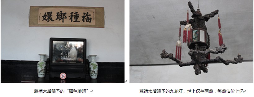 喬家大院是清代赫赫有名的商業(yè)金融資本家喬致庸的宅院,原名“在中堂”,大院為全封閉式的城堡式建筑群,建筑面積4175平方米,分6個(gè)大院,20個(gè)小院,313間房屋。外圍是封閉的磚墻,高10米有余,上層是女墻式的垛口,還有更樓,眺閣點(diǎn)綴其間,顯得氣勢(shì)宏偉,威嚴(yán)高大。大門坐西朝東,寓意“紫氣東來(lái)”,大門對(duì)面是磚雕百壽圖照壁。綜觀全院布局嚴(yán)謹(jǐn),設(shè)計(jì)精巧,俯視成“囍”字形,建筑考究,磚瓦磨合,精工細(xì)做,工藝精湛,充分顯示了我國(guó)勞動(dòng)人民高超的建筑工藝水平,素有“皇家有故宮,民宅看喬家”之說(shuō)。《大紅燈籠高高掛》、《喬家大院》、《昌晉源票號(hào)》、《趙四小姐與張學(xué)良》等40多部影視劇曾在此拍攝。據(jù)說(shuō)在八國(guó)聯(lián)軍攻占北京時(shí),慈禧太后被迫逃亡,在途經(jīng)山西時(shí),盤纏所剩無(wú)已。于是慈禧要求山西的晉商捐款,當(dāng)時(shí)著名的商業(yè)金融資本家喬致庸捐款數(shù)額最多,慈禧懿旨為其授匾,并且還送了兩個(gè)“九龍燈”,目前世上僅剩兩個(gè),每個(gè)估價(jià)均過(guò)億元?!案7N嫏嬛”的意思就是喬家大院是神仙居住的地方。