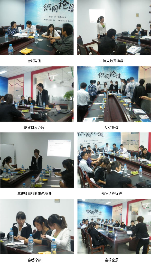 2011年9月16日,由青峰網(wǎng)絡(luò)組織的第七期織網(wǎng)論道會(huì)議在青峰網(wǎng)絡(luò)公司會(huì)議室成功舉辦。下午兩點(diǎn)半,嘉賓們?nèi)缂s而至,頓時(shí),我們的會(huì)場變成了“交際大舞臺(tái)”,在往期會(huì)議中認(rèn)識(shí)的嘉賓相互打著招呼,不認(rèn)識(shí)的新嘉賓在工作人員的介紹下與眾嘉賓們相互認(rèn)識(shí)。三點(diǎn)鐘在主持人甜美的開場聲中,本次會(huì)議拉開了序幕。本次會(huì)議由資深客戶經(jīng)理陳艷平女士主講,我們期待她的精彩演講。