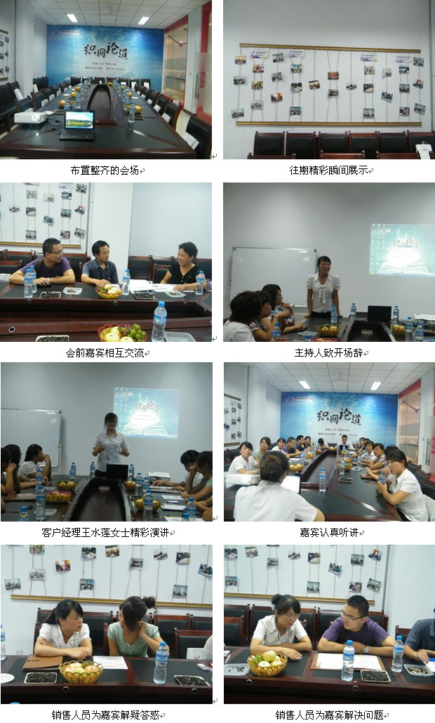 2011年8月12日,織網(wǎng)論道第五期活動在青峰網(wǎng)絡(luò)公司會議室如期舉行,下午兩點半,參會嘉賓陸續(xù)來到公司。本次會議由銷售部客戶經(jīng)理王水蓮女士主講網(wǎng)站營銷的幾個誤區(qū),通過王經(jīng)理圖文并茂的講解,幫助嘉賓重新認識自己的網(wǎng)站,使企業(yè)網(wǎng)站更能體現(xiàn)出一家企業(yè)的精神面貌。