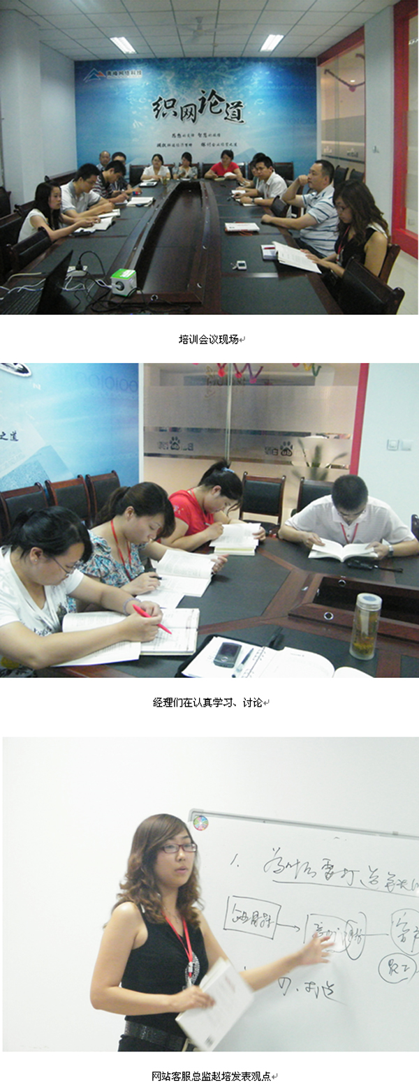 2011年7月23日上午11點(diǎn)20,在公司織網(wǎng)論道會議室,《向毛澤東學(xué)管理第四講》如期進(jìn)行,新鄉(xiāng)經(jīng)理層級15人參加會議,會議由培訓(xùn)經(jīng)理蔡俊杰主持,會議開始大家一起學(xué)習(xí)李彥宏視頻《每個互聯(lián)網(wǎng)公司都有盲點(diǎn)》,隨后對為什么我們要打造鐵的紀(jì)律和結(jié)合自己的工作如何打造鐵的紀(jì)律展開討論,客服總監(jiān)趙培,百度客服安陽組經(jīng)理崔陽,百度客服網(wǎng)盟組經(jīng)理涂東,分別發(fā)表看法,闡述自己的觀點(diǎn),最后席總做會議總結(jié),會議圓滿結(jié)束。