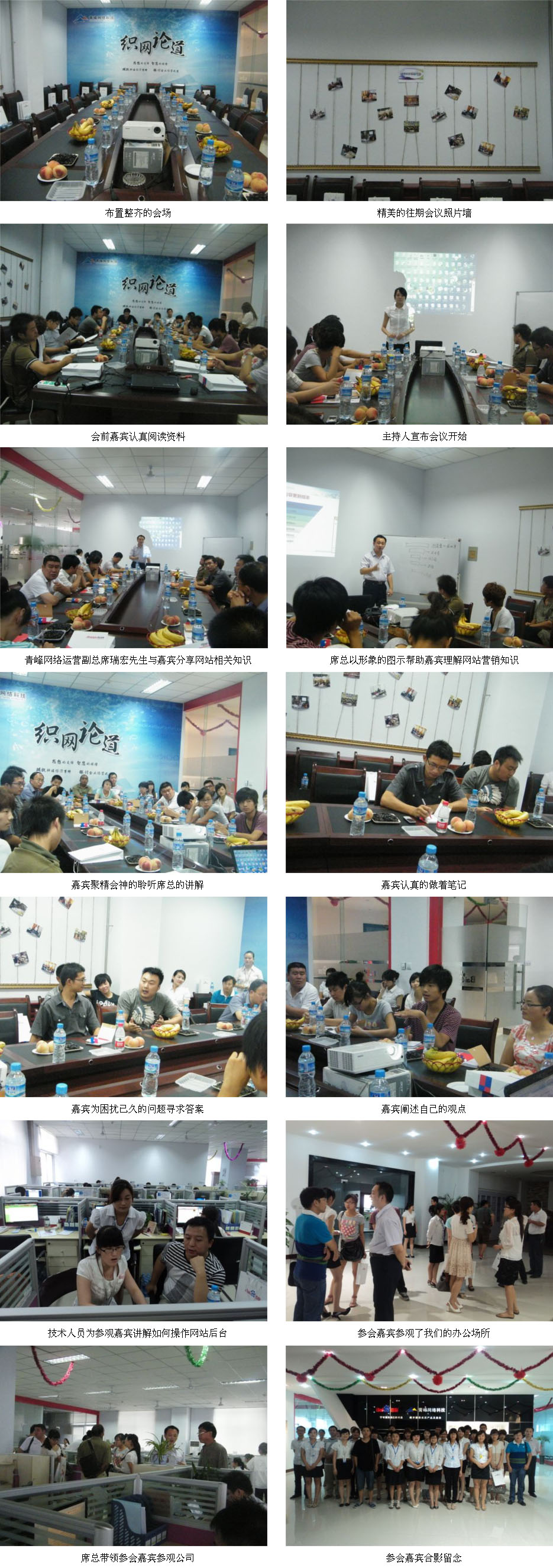 2011年7月15日,以“織網(wǎng)論道”為主題的第一期俱樂(lè)部會(huì)議在青峰網(wǎng)絡(luò)公司會(huì)議室召開(kāi),下午兩點(diǎn)鐘,嘉賓們陸續(xù)來(lái)到會(huì)場(chǎng),看著裝飾一新的會(huì)議室,對(duì)這種別開(kāi)生面的形式非常好奇,不斷向工作人員了解會(huì)議“內(nèi)幕消息”,兩點(diǎn)半,在客戶的翹首期盼中,主持人宣布會(huì)議正式開(kāi)始。