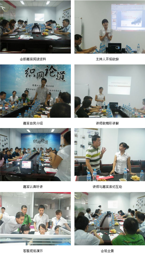 2011年8月19日,織網(wǎng)論道第六期活動在新鄉(xiāng)青峰網(wǎng)絡(luò)會議室舉行,下午兩點半?yún)钨e相繼出現(xiàn)在現(xiàn)場,客服同學(xué)送上精心準(zhǔn)備的精神食糧—網(wǎng)絡(luò)營銷資料,在會議開始之前,嘉賓認(rèn)真學(xué)習(xí)了網(wǎng)絡(luò)營銷的奧秘,現(xiàn)在隨鏡頭一起來看現(xiàn)場情況。 在講師專業(yè)的講解下,嘉賓對網(wǎng)絡(luò)營銷有了進一步的認(rèn)識。通過對“新華書店與當(dāng)當(dāng)網(wǎng)”進行實例分析講解,網(wǎng)絡(luò)營銷的優(yōu)勢進一步得到了突顯,會后嘉賓們對“贏銷寶”網(wǎng)絡(luò)營銷軟件產(chǎn)生了極大的興趣,紛紛圍在客服同學(xué)的周圍看其演示,借用魔術(shù)大師劉謙的一句話“見證奇跡的時刻到了”,小小的一個軟件,可以使嘉賓的營銷信息遍布整個互聯(lián)網(wǎng)。