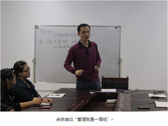 余總指出,提升管理其實(shí)就是捅破一層紙,而捅破這層紙的關(guān)鍵就是提升思想的深度與寬度,要站在公司立場上,多方位考慮利益雙方的得失,按照輕重緩急解決問題。日常工作生活中,要注意細(xì)節(jié)方面習(xí)慣的培養(yǎng),如語言的魅力修煉要注意:兒童需要童真,女人需要贊美,年輕人需要直爽,中年人需要體面,老人需要尊重。行為的魅力修煉要注意:自我行為的約束及熱情幫助別人的行為付出。